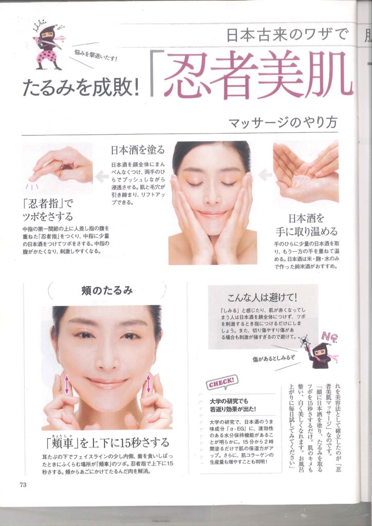 「からだにいいこと」では、フェイスライン・あごのたるみへの日本酒を使った美顔美肌マッサージをご紹介させていただきました。