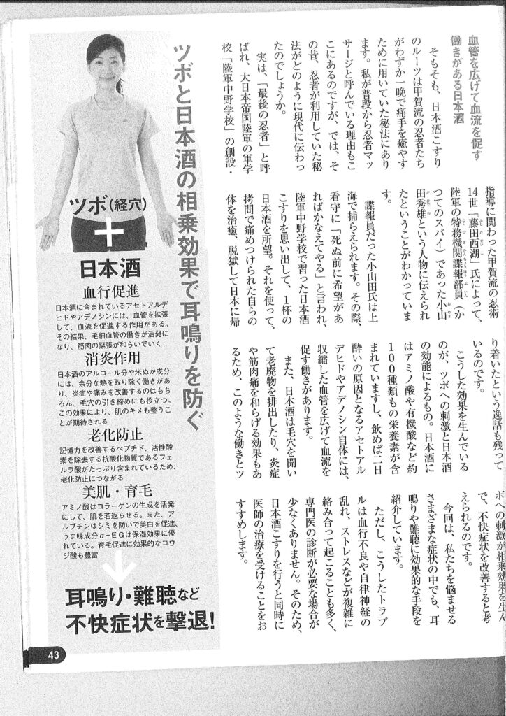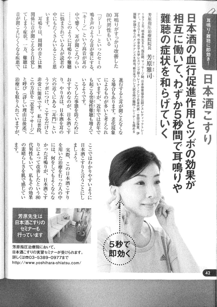 「5秒痛み消し術」では、耳鳴り・難聴への日本酒を使ったセルフケアをご紹介させていただきました。