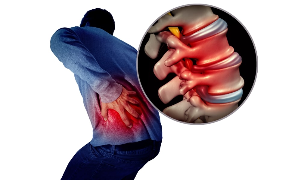 - 下肢への痛み(進行時):症状が悪化して神経に触れるようになると、お尻から太ももにかけての痛みやしびれを伴うこともあります。